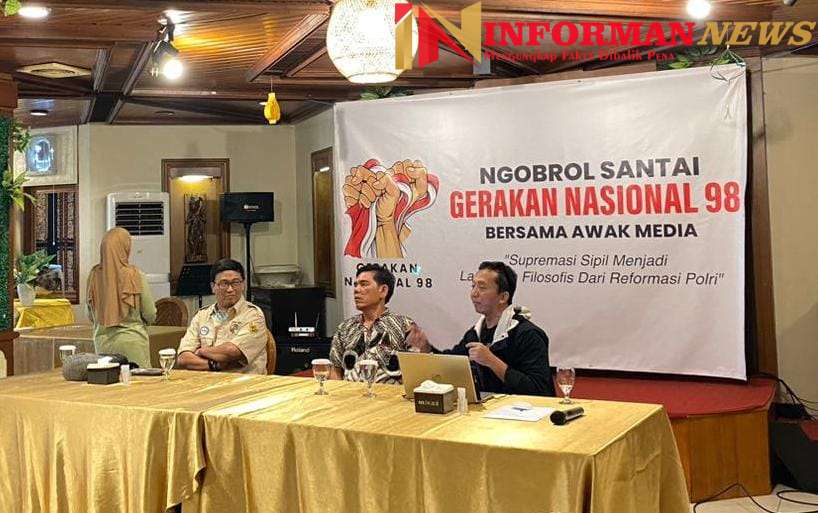 Jakarta- Informannews.com || Para aktivis dari Gerakan Nasional (GN) ’98 menggelar diskusi bertema “Supremasi Sipil Menjadi Landasan Filosofis dari Reformasi POLRI” di Jakarta, Minggu, (21/9/2025).