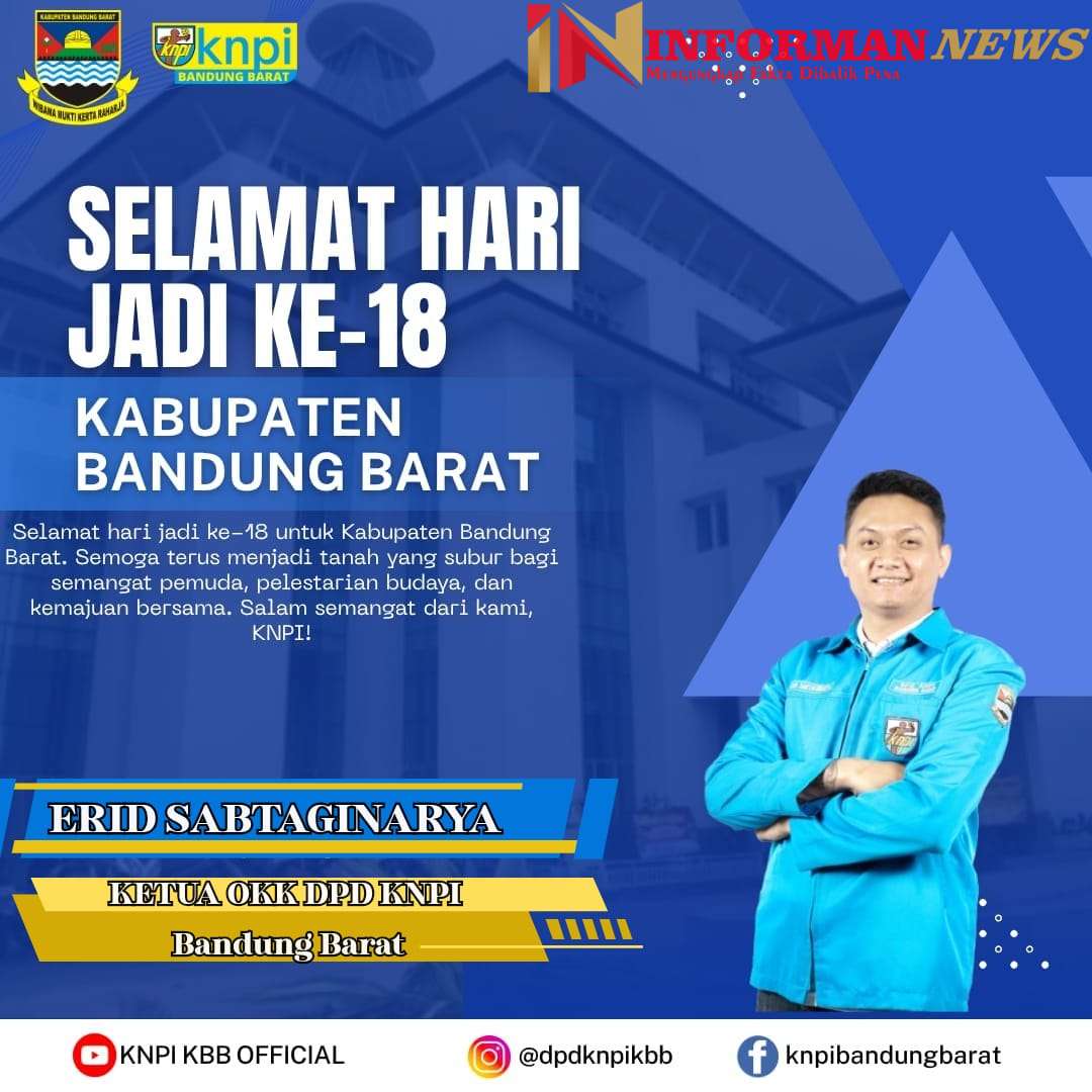 Bandung Barat- Informannews|| Dalam suasana peringatan Hari Ulang Tahun (HUT) ke-18 Kabupaten Bandung Barat, berbagai elemen masyarakat turut menyampaikan harapan dan apresiasinya terhadap perjalanan pemerintahan daerah. Salah satunya datang dari kalangan pemuda, melalui Ketua OKK DPD KNPI Kabupaten Bandung Barat, Erid Sabtaginarya, yang memberikan pandangan tajam dan penuh semangat tentang peran strategis pemuda dalam pembangunan daerah.