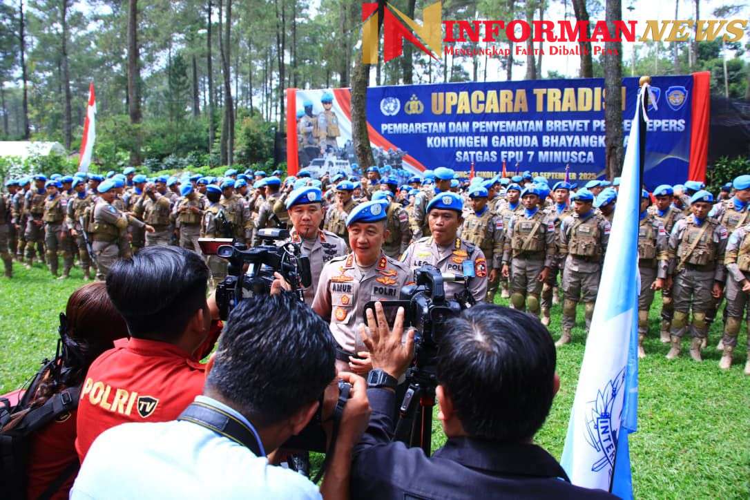 Lembang – Informannews || Kepolisian Negara Republik Indonesia kembali menegaskan komitmennya dalam menjaga perdamaian dunia melalui partisipasi aktif dalam misi PBB. Hari ini, Divisi Hubungan Internasional Polri melaksanakan upacara tradisi pembaretan sebagai penanda berakhirnya pelatihan pasukan Formed Police Unit (FPU) 7 yang akan bertugas dalam misi MINUSCA (United Nations Multidimensional Integrated Stabilization Mission in the Central African Republic).