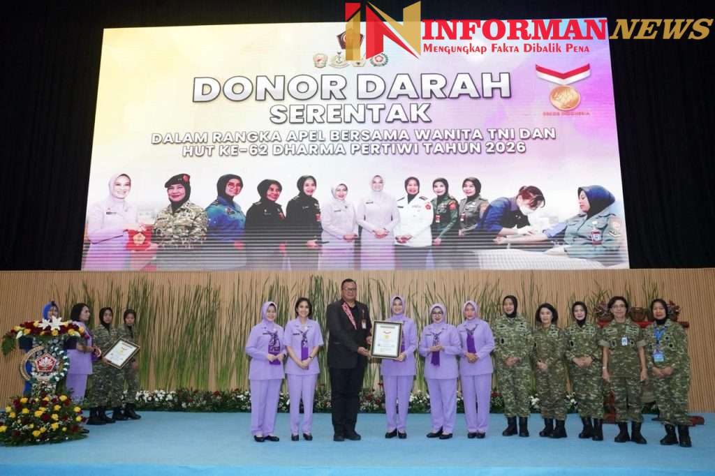 JAKARTA,||INFORMANEWS.COM(Puspen TNI). Ketua Umum Dharma Pertiwi dan Ibu Asuh Wanita TNI Ny. Evi Agus Subiyanto memimpin langsung kegiatan donor darah serentak dalam rangka Apel Bersama Wanita TNI dan peringatan HUT ke-62 Dharma Pertiwi Tahun 2026 yang digelar di GOR Ahmad Yani Mabes TNI, Cilangkap, Jakarta Timur, Kamis (2/4/2026). Kegiatan ini melibatkan Wanita TNI, anggota Dharma Pertiwi, ASN wanita, serta keluarga besar TNI yang berpartisipasi secara luring dan daring di seluruh Indonesia.