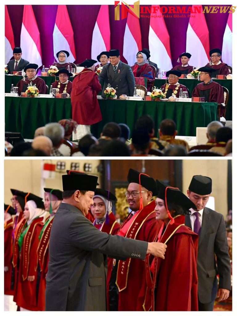 Lebih lanjut, Presiden Prabowo berpesan kepada para wisudawan agar selalu memilih jalan yang benar dan berpegang pada integritas. “Jadi saudara-saudara, anak-anak muda harapan kita. Waspada selalu menatap masa depan dengan berani, tapi juga dengan waspada. Waspada, jangan mudah dibohongi,” tegasnya.