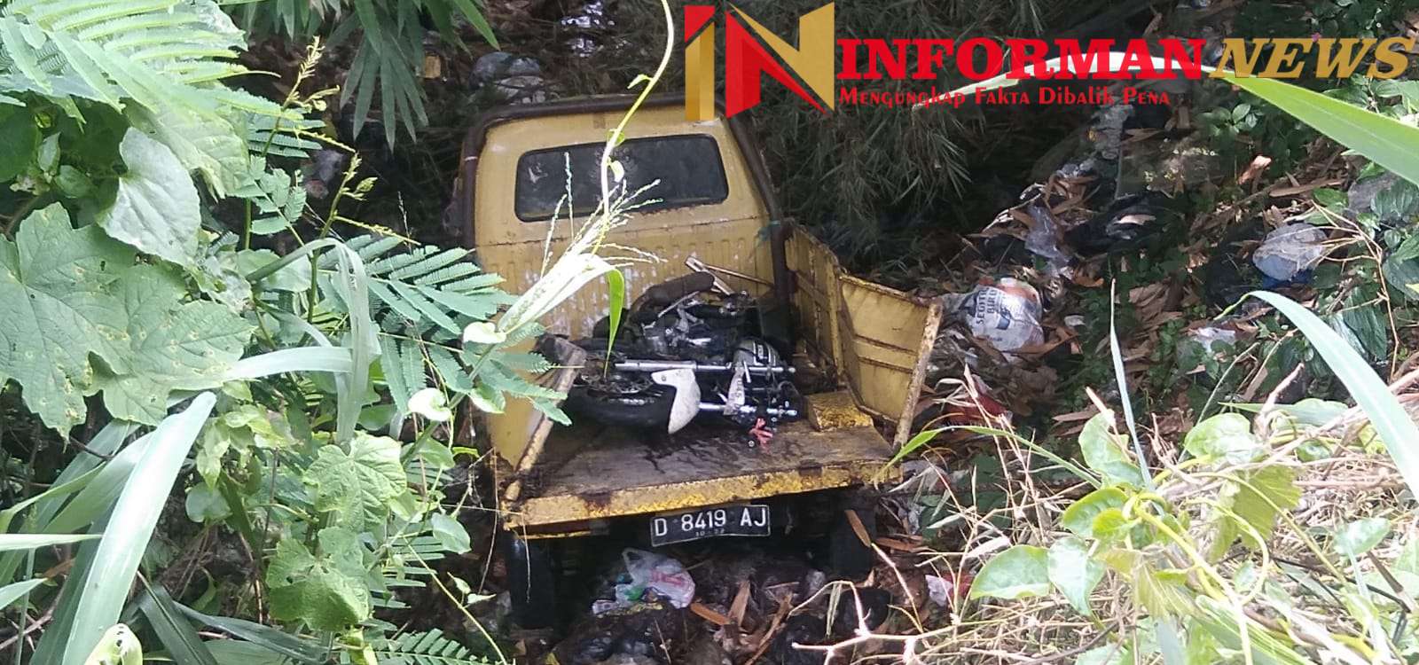 Cihampelas – Informannews.com|| Satu unit mobil yang ditumpangi dua orang pria satu pengemudi dan satunya lagi penumpang, kendaran tersebut membawa satu unit motor . Mobil pickup tersebut mengalami kecelakaan lalu lintas dengan terperosok ke jurang sedalam 30 meter di Jalan Sarongge, Desa Mekar Mukti, Kecamatan Cihampelas, pada Sabtu malam hari sekira pukul 22.30 Wib( 20/12/2025)