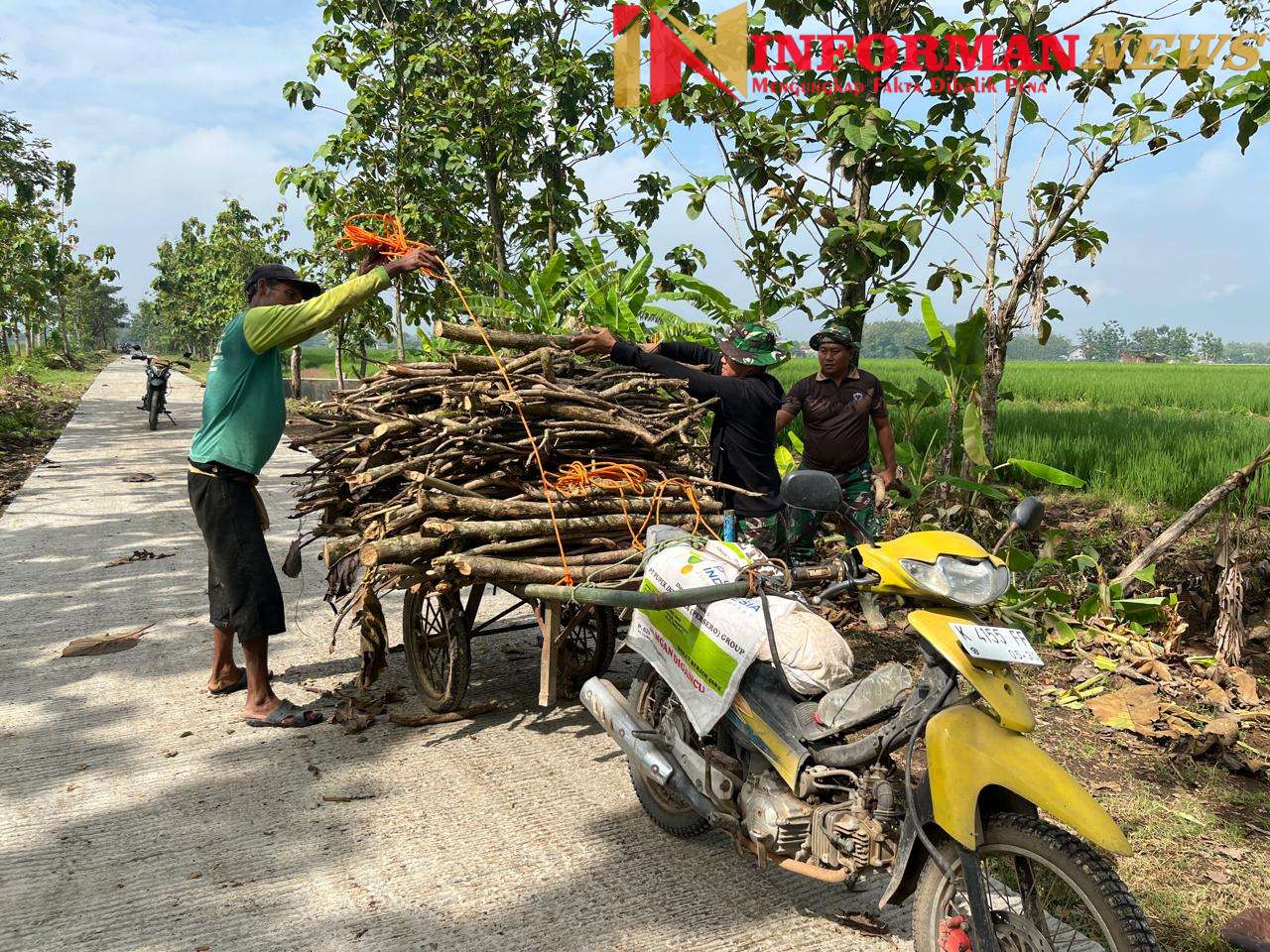 Praka Dian dan Kopda Sutrisno salah satu Anggota Satgas TMMD dengan keikhlasan hati secara langsung membantu mengangkat kayu bakar tersebut. Praka Dian Dan kopda Sutrisno juga membantu mengangkat kayu tersebut di tata di grobak yang di tarik dengan sepeda motor.