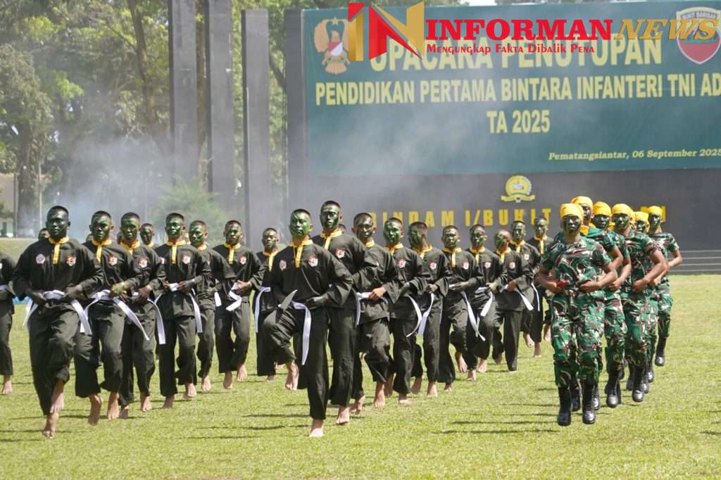 Pematangsiantar – Informannews|| Pangdam I/Bukit Barisan Mayjen TNI Rio Firdianto pimpin upacara penutupan Pendidikan Pertama Bintara (Dikmaba) Infanteri TNI AD tahun anggaran 2025 di Lapangan Jenderal Sudirman, Rindam I/BB, Pematangsiantar, Sabtu (6/9/2025).