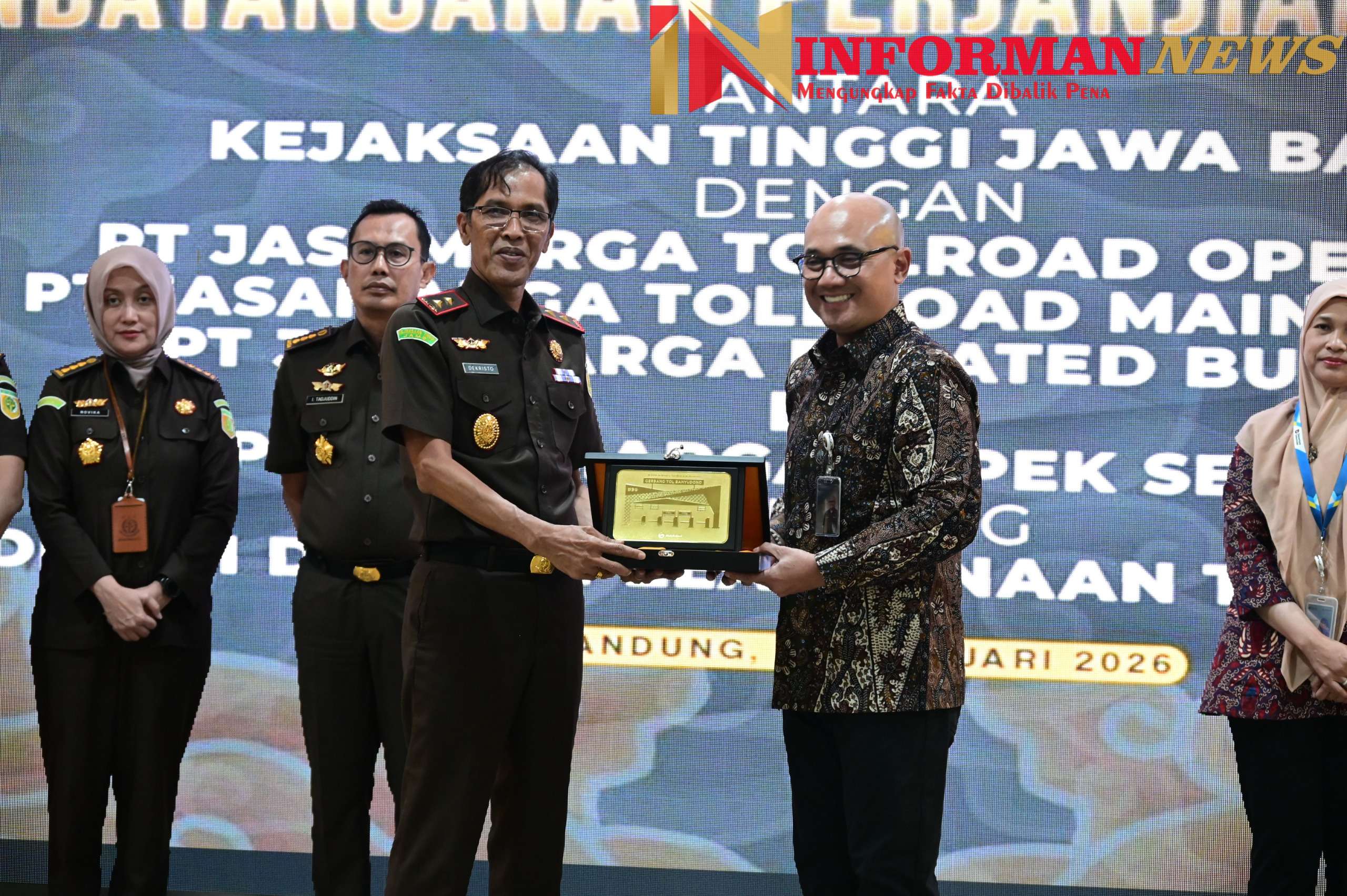 Bandung- InformanNews || Kajati Jabar Dr. Hermon Dekristo, S.H., M.H. menandatangani Perjanjian Kerjasama antara Kejaksaan Tinggi Jawa Barat dengan PT. Jasamarga Tollroad Operator (JMTO), PT. Jasamarga Tollroad Maintenance (JMTM), PT. Jasamarga Related Business (JMRB) dan PT. Jasamarga Jakarta Cikampek Selatan (JJS) tentang Koordinasi dalam Pelaksanaan Tugas dan Fungsi yang ditandatangani oleh Direktur Pengembangan Usaha PT. Jasa Marga (Persero) Tbk Ari Respati diselenggarakan di Aula R.Soeprapto Kejati Jabar (10/02/26).