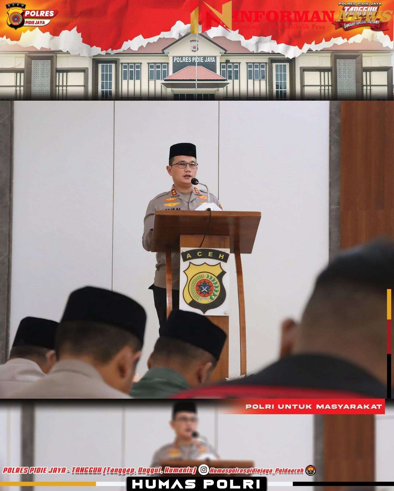 “Melalui peringatan ini, marilah kita semua bersinergi untuk menjaga keamanan, ketertiban, dan kedamaian di Pidie Jaya, agar menjadi contoh bagi daerah lain,” ujar AKBP Ahmad Faisal Pasaribu.