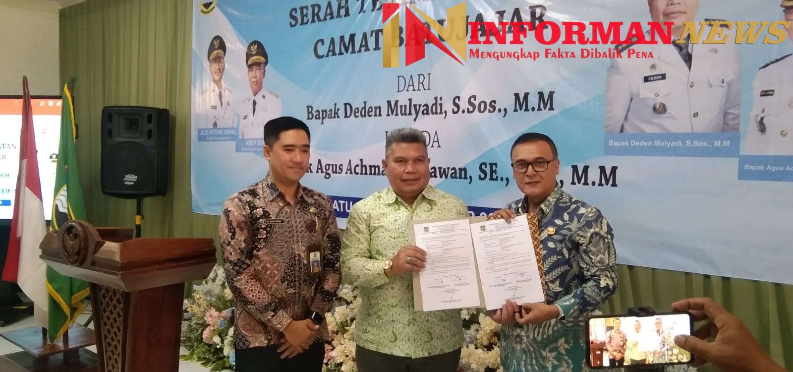 Serah Terima Jabatan Camat Kecamatan Batujajar ,dari pejabat lama Deden Mulyadi Sos.M.M, kepada pejabat baru Agus Achmad Setiawan .S.E, S.ip M.M digelar, bertempat di Aula Kantor Pepabri Ancab Batujajar, turut hadir para Kepala Desa Frokopincam tokoh Masarakat dan tamu undangan lain nya Batujajar. senin (9/10/2025)